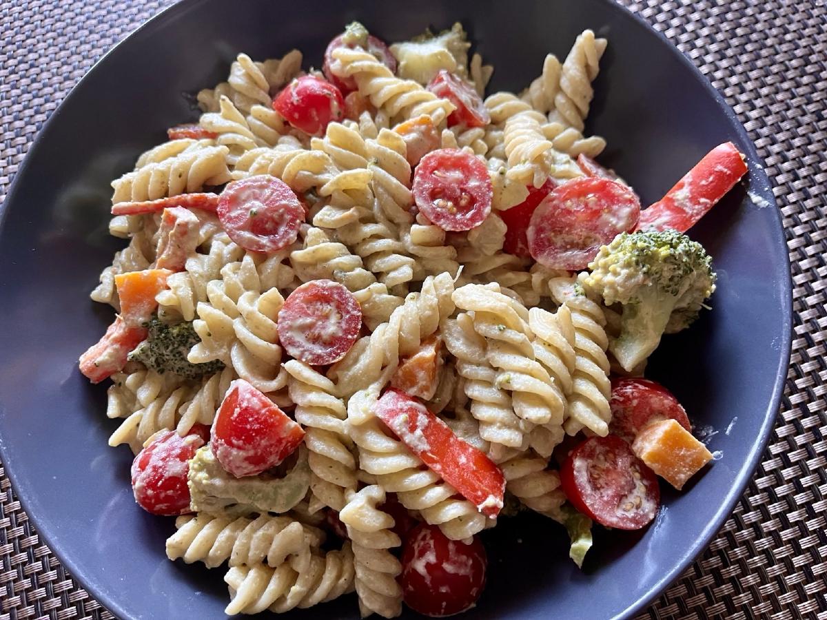I’ve enjoyed this pasta salad largely thanks to the walnuts, which I haven’t used with pasta before. When blended with the herbs, it tastes kind of like a pesto, I couldn’t taste the walnuts that much. Perfect for some spare broccoli!