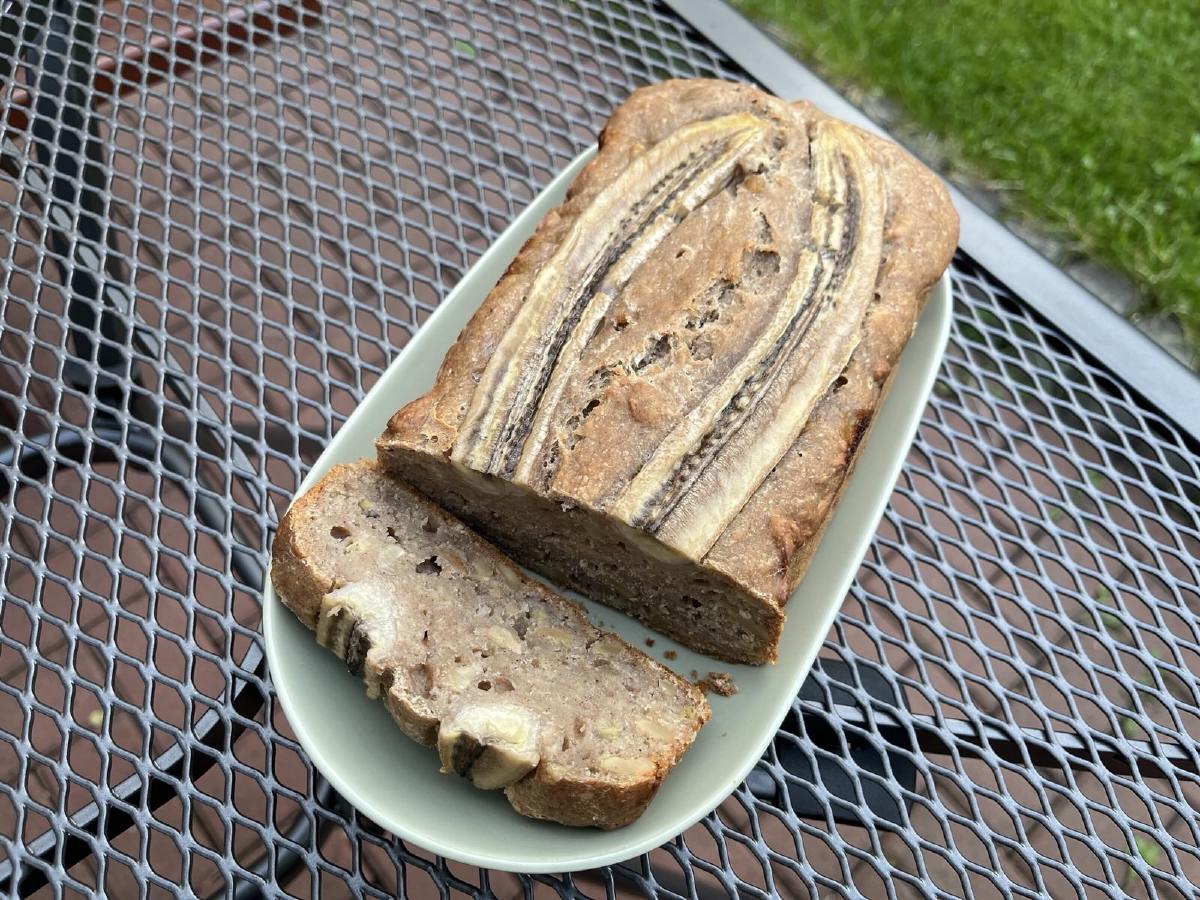 - Mix the banans with the remaining wet ingredients (milk, syrup, oil, lemon juice, vanilla).