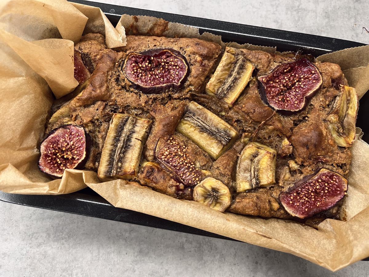 - Decorate with the sliced banana and fig.